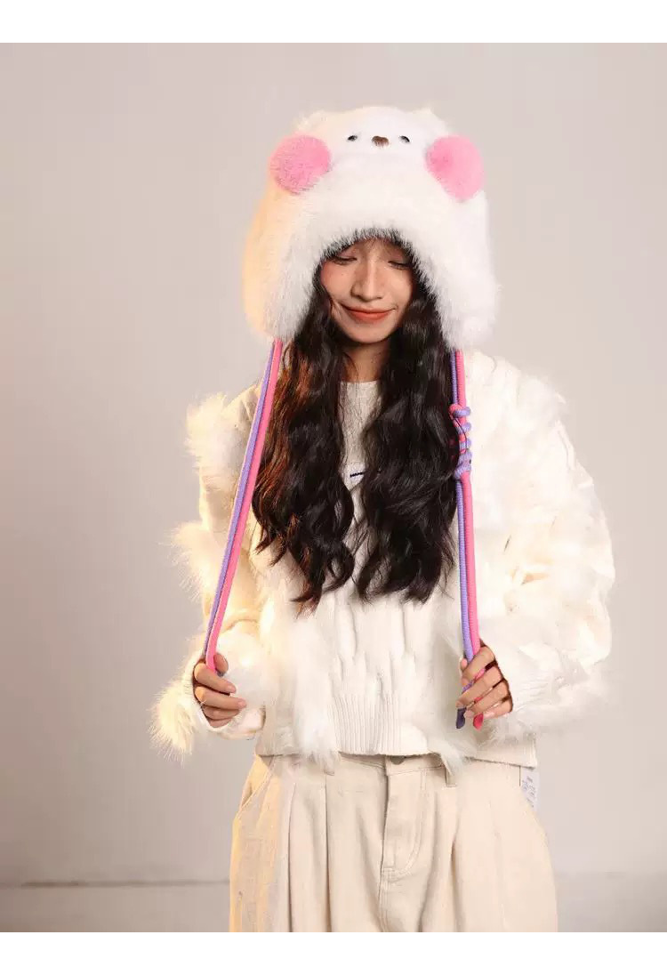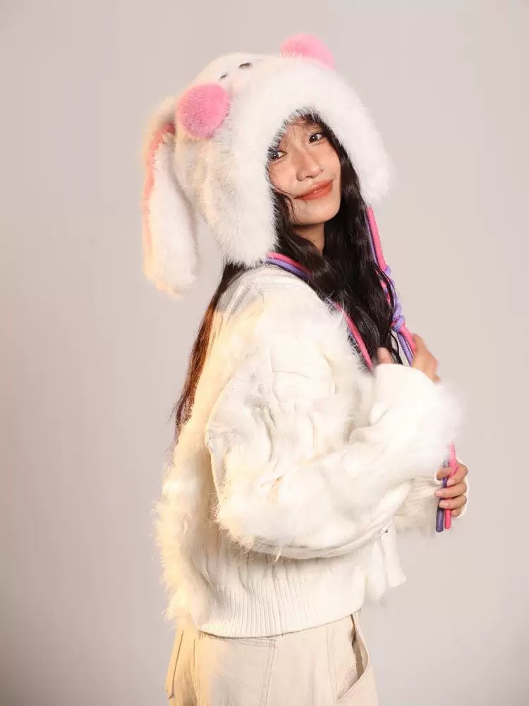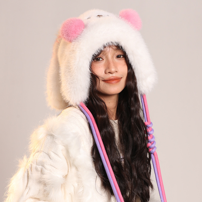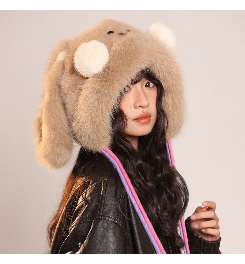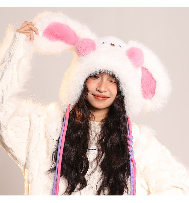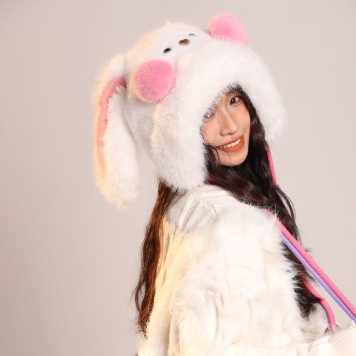 Brand [Sondona] 2025 New Cute Blush Long-Eared Rabbit Plush Hat For Adults And Children, Winter Warmth, Ear Protection, Fleece And Thickening, Cold-Proof Lei Feng Hat, Atmosphere, Face-Making, Versatile Design Y2k